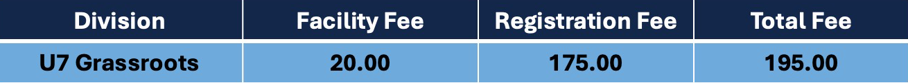 What are the 2026 Summer U7 Grassroots Fees?