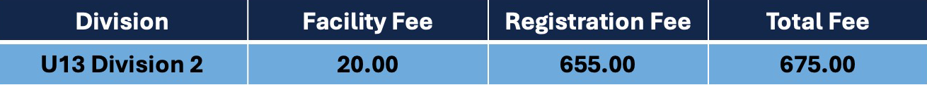 What are the 2026 Outdoor U13 Division 2 Fees?