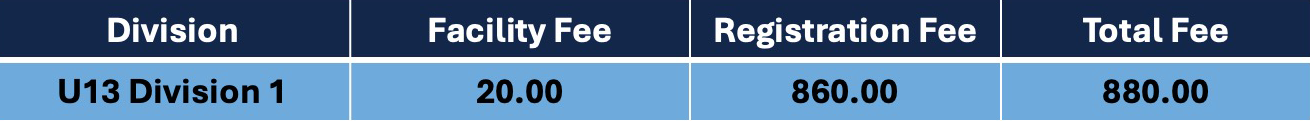 What are the 2026 Summer U13 Division 1 Fees?